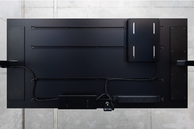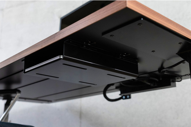 天板裏に埋め込んだ4本のレールにより、様々なモジュールが装着可能なDESK MODULAR SYSTEM。電源タップを固定しケーブルを這わせたり、トレイを装着してPCや書類が格納できます。(特許取得済)
