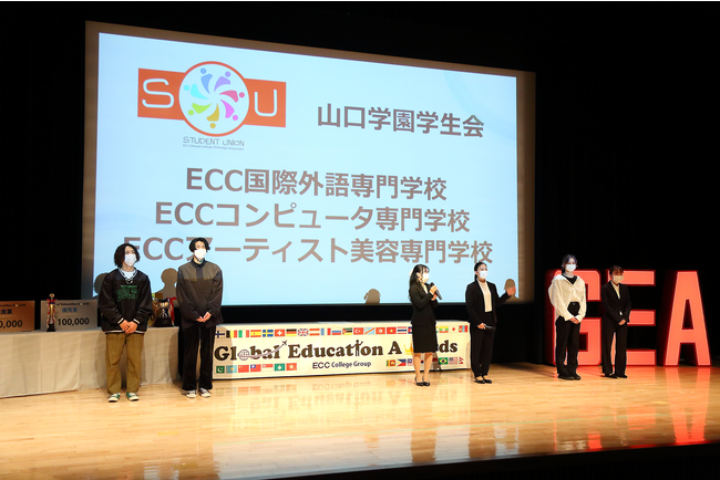 2019年から始まった「Global Education Awards」は、今年で第4回目を迎えるプレゼンテーションコンテストです。ECC国際外語専門学校(所在:大阪市北区、学校長:瀧山 淳一)と、姉妹校であるECCコンピュータ専門学校、ECCアーティスト美容専門学校の学生が集結し、「山口学園の“Global Education”を通じて得た考えや自己成長などについて語る・伝える・共有する」をテーマに大会当日は想いを伝え合いました。2月8日の本選大会には各専門学校の学内予選を勝ち抜いたコンテスタント13組が出場。うち、本校からは日本人学生・外国人留学生あわせて10組が出場しました。