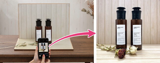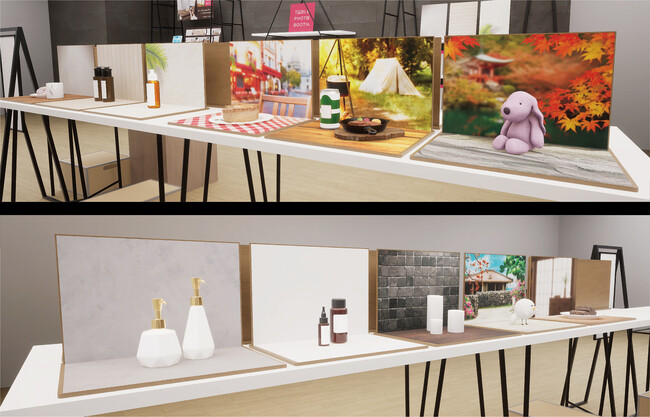 体験コーナーでは、コスメやアクセサリーなどの商品撮影に適したシンプルで高級感ある撮影ブースと、ぬいぐるみやフィギュアなど推し活グッズの撮影に適したポップで賑やかな撮影ブースなど10種類以上設置されています。