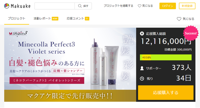 ゴールドラッシュ株式会社(代表取締役:長岡 康弘)は、髪質アプローチ水素ヘアケア Minecolla(ミネコラ)のホームケア「ミネコラパーフェクト3」の新商品バイオレットシリーズを企画・開発、2021年12月10日(金)よりクラウドファンディングサイトMakuakeで先行発売し、コスメ(化粧品)ジャンルでトップレベルの応援購入金額を達成中!開始わずか30分で目標金額を達成し現在1200万超え4000%を突破しました。なお、本クラウドファンディングは2022年2月10日(木)まで実施いたします。
