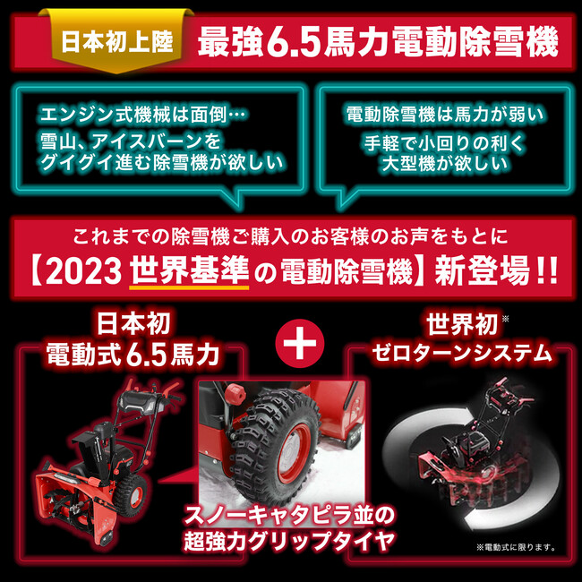 1.日本初上陸の電動除雪機 国内最大パワー「6.5馬力(最大出力4,800W)」