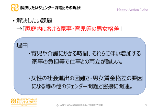 「Happy Action Labo」の活動第一弾として、「ジェンダー平等を実現するためのアイデア」をテーマに、