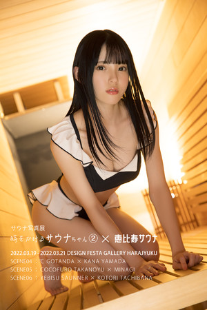 2022年1月に開催した『時をかけるサウナちゃん』の続編となる本展示会。新たな睡眠とサウナのカタチを提供する「ドシー五反田」、廃業した銭湯を改修した今春OPEN予定の「COCOFUROたかの湯」、蕎麦屋×個室サウナを掛け合わせた異色の施設「恵比寿サウナー」の3つの施設で撮影した作品の展示販売を行う。写真作品のモデルである山田かな、美凪、立花ことりが登場するイベントなども実施予定。