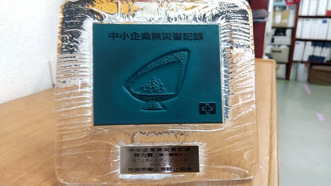 ATUホールディングス株式会社『中小企業無災害記録証』受領
