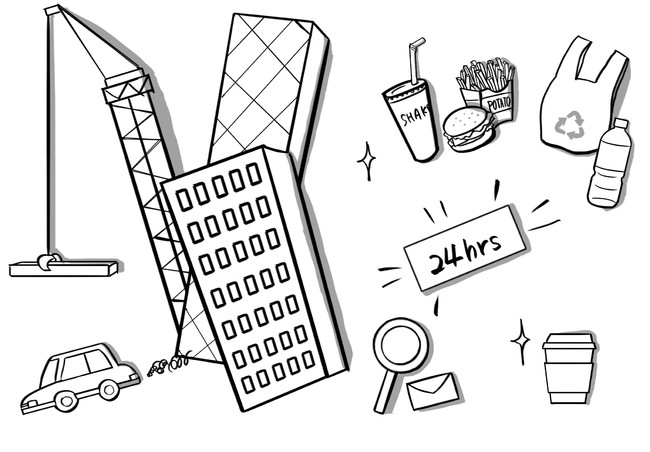 それでもなぜか、毎日果てしなく新しい巨大ビル建築が続いていて、あちこちで、大地にコンクリートを打ち付ける音がカンカン響いている。