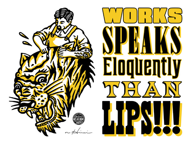 制作工程をすべて手作業で行うというクラフトマンシップに則った彼のスタイルは東京・原宿文化を中心に各業界より大きな信頼を置かれ、これまでSUPREME( シュプリーム )、NEIGHBORHOOD( ネイバーフッド )、Ralph Lauren( ラルフローレン )、ユニクロなどのショップサイン、グラフィックを手掛けてきました。