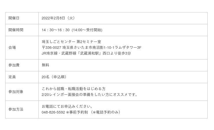 ★令和3年度 第4回レインボー面接会in大宮 2月20日(日)11:20~16:10★