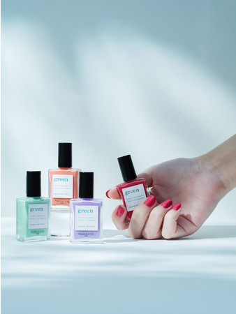2015年より地球にも爪にも優しいグリーンビューティーネイルの開発を始め、2017年に植物由来成分最大84%で作られたナチュラルネイルカラー「green」をリリースしました。