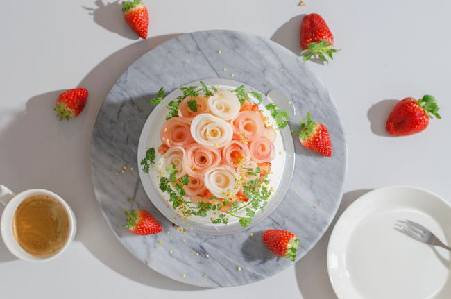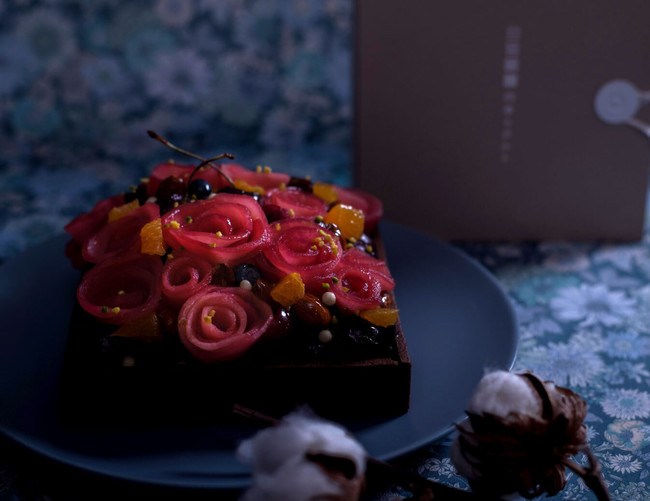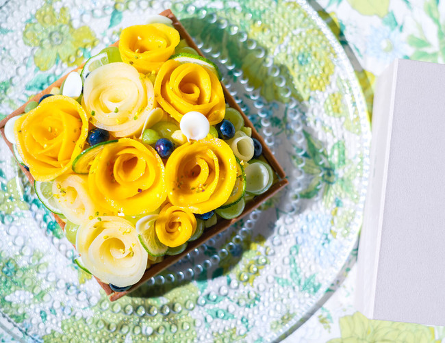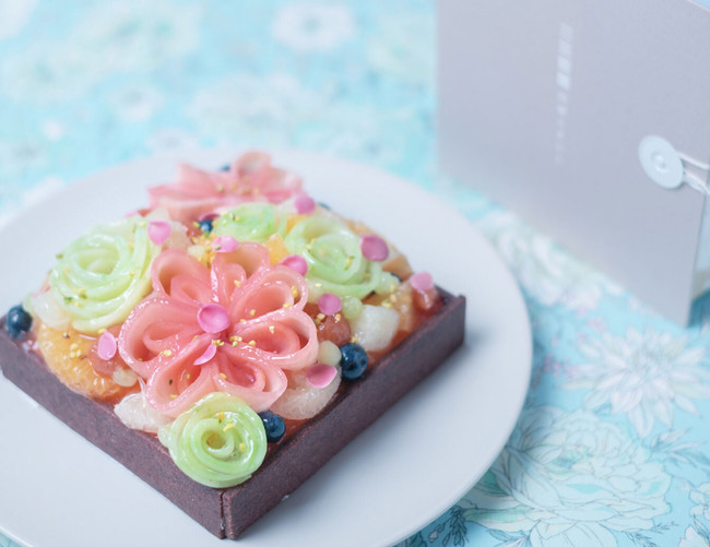 美しい日本の花々をモチーフに、旬の食材を使って十二の月をタルトという形で表現した、十二輪のタルト。こちらはスイーツアート作品として写真撮影をするためだけに生み出されたものでした。