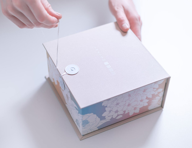 ご注文いただいたタルトは、季節が巡る様子が描かれたギフトボックスに入れてお届けします。