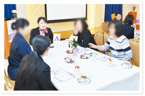 それぞれのテーマについて、ケーキ・ドリンクを楽しみながらグループで前向きな意見交換・交流をします。