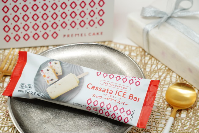 当社商品「プレメルケーキ(PremelCake)」(※)とセブン−イレブンのコラボで実現した「アンデイコ カッサータアイスバー」は、濃厚なミルクにナッツやドライフルーツの旨味を凝縮したこだわりのアイスバー。全国のセブン−イレブンでぜひお買い求め下さい。