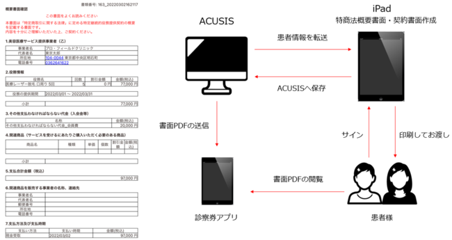 株式会社プロ・フィールド(本社:東京都中央区、代表取締役:車 陸昭)は自由診療に特化した電子カルテ「ACUSIS」の新機能として、iPadで作成できる『 特商法(特定商取引法)書面機能 』を2022年2月にリリースしました。