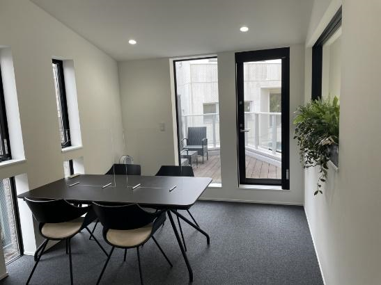 アットオフィスは、『この10年で10人の社長を作る。』というスローガンのもと、市場に存在する10の課題を解決できる組織を目指しており、「at Labo」は新規事業開発のための拠点として2021年にオープンしました。「Labo」という名前には、新事業を「創造」「研究」するという意味が込められています。普段は社内ミーティングや研修、採用面接などに活用しています。