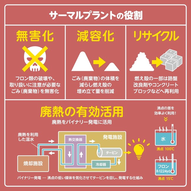 昨今の産業廃棄物処理需要の増加、多様化、処理困難化また近隣への環境負荷の低減を考慮し て能力の増強と最新システムを導入することで、上記の諸問題に対応することを目的としていま す。プラント施設概要については、添付資料をご覧ください。