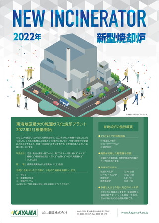 加山興業株式会社(本社:愛知県名古屋市熱田区南一番町15-5、代表取締役:加山順一郎) はこの度、愛知県豊川市にある千両リサイクルプラント既存施設の一部を解体し、日量91.68t の焼却プラントを新たに設置いたしました。2 月8 日(火)に使用許可を受諾し、本日より稼働 を開始いたします。