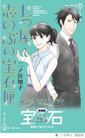 『のだめカンタービレ』の二ノ宮知子先生が現在『Kiss』で連載中の漫画『七つ屋 志のぶの宝石匣』のキャラクター・志のぶと顕定が、宝石を分かりやすく解説するミニブック付きのチケット。