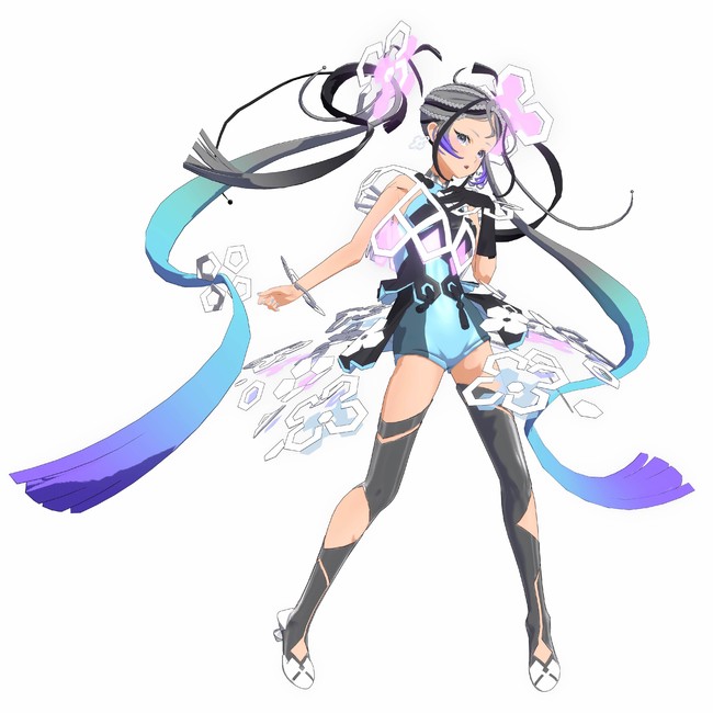 バーチャル世界でのドレスをテーマにデザインしてみました。浮いてる花柄とツインテールがポイントです。