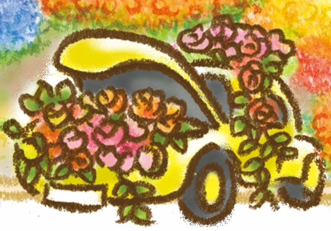 廃自動車を活用し、グリーンとフラワーでアレンジします。