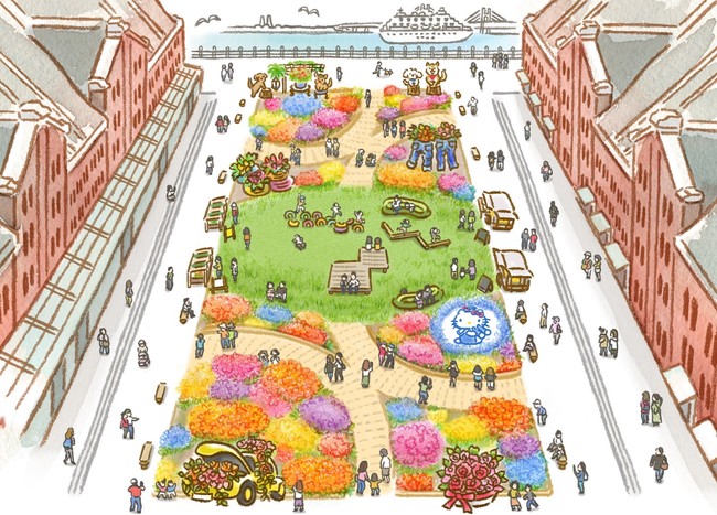 4月19日(火)より、横浜赤レンガ倉庫1号館内で開催予定のサンリオ展とのコラボレーションも決定。セーラールックに身を包んだ横浜限定デザインのハローキティを色とりどりの花で描いた、直径4mの「サンリオガーデン」が設置されます。