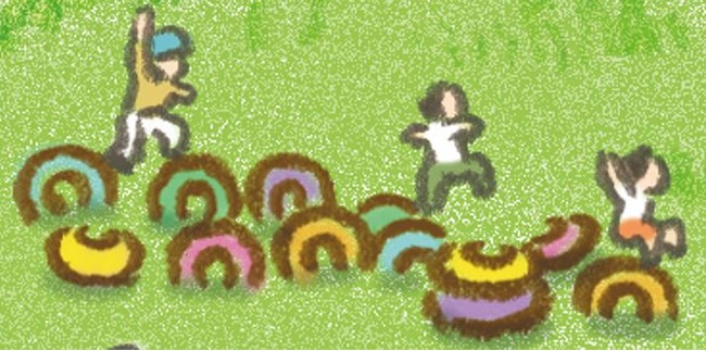 カラフルに塗装したタイヤを並べて、子供たちが安心して遊べる空間を創ります。