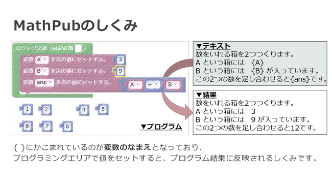MathPubは小学生から算数・数学×プログラミングを身に着けられるシステムを目指して開発されました。