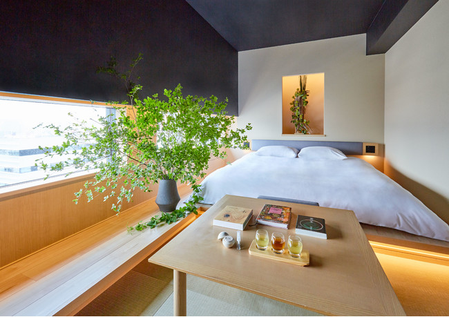 客室のディレクションは、ONSEN RYOKAN 由縁 新宿の生花を手掛けるpropellaheartが引き続き監修。ドウダンツツジの生命力を感じる設えや、書籍をお愉しみいただけます。