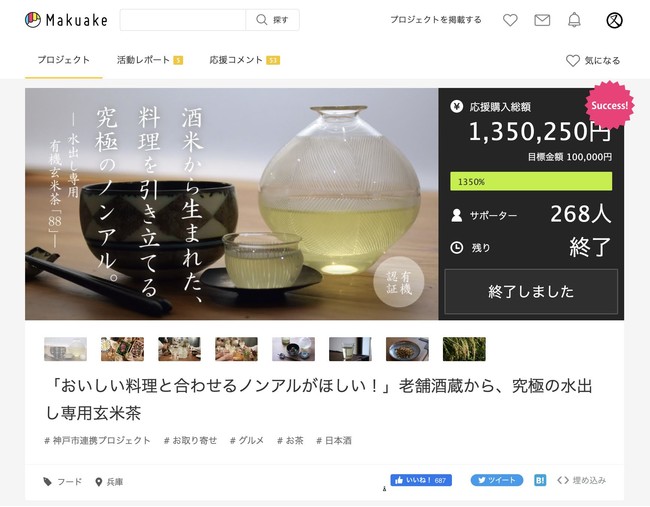 料理を楽しむための水出し専用玄米茶「88」、クラウドファンディングで目標の1350%を達成し、5/28(土)に一般発売スタート