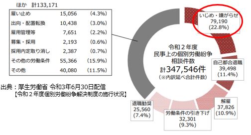 民事上の個別労働紛争の相談件数で職場の「いじめ・嫌がらせ」が
