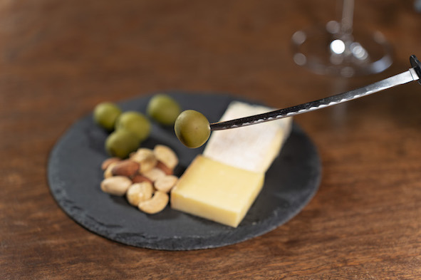 チーズなどのそれ程硬くない食材はカット可能です。フッ素加工済みのため、食器として使用可能。
