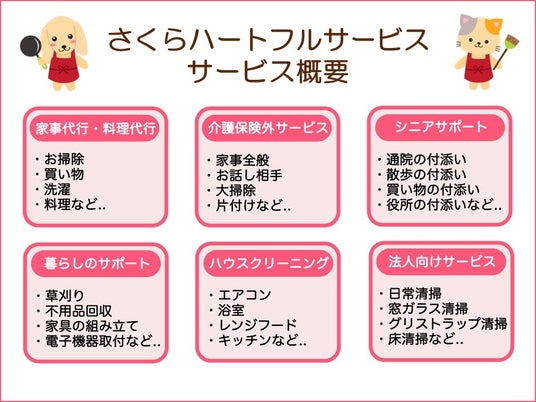 「さくらハートフルサービス」は、横浜市を中心に“人と人、地域と地域の繋がりで幸福感のある暮らしを実現する”をコンセプトに家事代行や、高齢者の方の介護保険では足りない部分の生活支援、ハウスクリーニングなど暮らしに関するサービスを提供する事業者です。今後も“人”だからできる“あたたかいサービス”を提供し続けることで、夫婦共働きや独居高齢者の増加など社会構造の変化によって生じる地域の課題の解決に貢献して参ります。