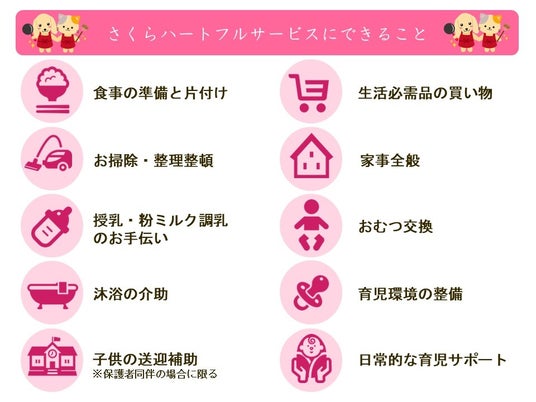 この度、「さくらハートフルサービス」では、これまでの家事代行や介護保険外サービスで得た実績を基に、2024年4月8日(月)より産前産後のママをサポートする「産前産後ヘルパー事業」を開始いたします。なお、本サービスは横浜市が提供する子育て支援サービスにおける業務受託事業者として新たに参画いたします。