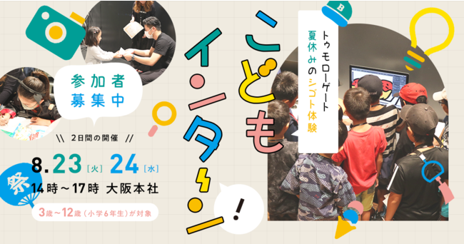 トゥモローゲート株式会社 (本社:大阪府大阪市、代表取締役 最高経営責任者:西崎 康平)は、小学生以下を対象にエンターテイメント要素のある仕事体験を通して、将来のキャリアのきっかけづくりや、キャリアの選択肢を増やしてもらうことを目的としたイベント「こどもインターンシップ」を開催します。