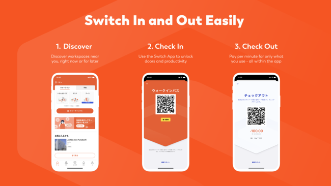今回新たにオープンする「JustCo Zone」は郊外で展開する無人型従量制のワークスペースです。最大の特徴は様々なタイプのワークスペースを最低10分から利用可能で、1分単位で追加利用できる、分単位の従量課金制の料金体系です。ホットデスクは10円/分から利用できる従量課金制で、ユーザーは最小限の負担で最大の利便性を享受し、さまざまなタイプのワークスペースを自由に利用することができます。利用者は、Switchモバイルアプリで簡単な登録を行うだけでロックを解除し、デポジットやクレジット残高が不要で、利用した時間分だけ支払うことができます。企業やその従業員は、オンデマンドでワークスペースを見つけ、郊外の自宅近くで仕事をし、まさに「どこからでも仕事ができる」ようになります。