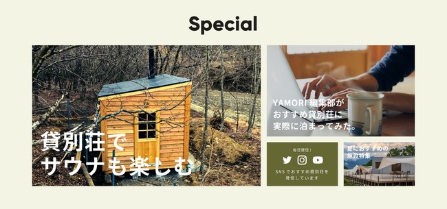 株式会社ネクストレイト(本社:東京都渋谷区、代表取締役:伊藤真也)は、貸別荘やバケーションレンタルハウスの宿泊予約サイト「YAMORI」をオープン致しました。宿泊体験などをコンテンツ化し、施設のよさを最大限に伝え、借り手、貸し手の双方に有益な情報を提供するサイトとなっております。それに伴い、施設オーナー様の募集を開始致します。