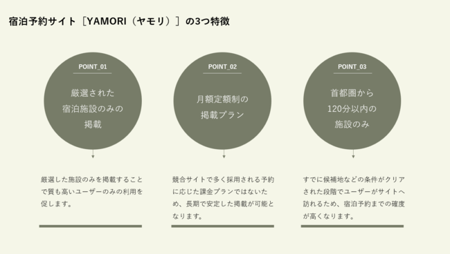 ■宿泊予約サイト[YAMORI(ヤモリ)]の3つ特徴