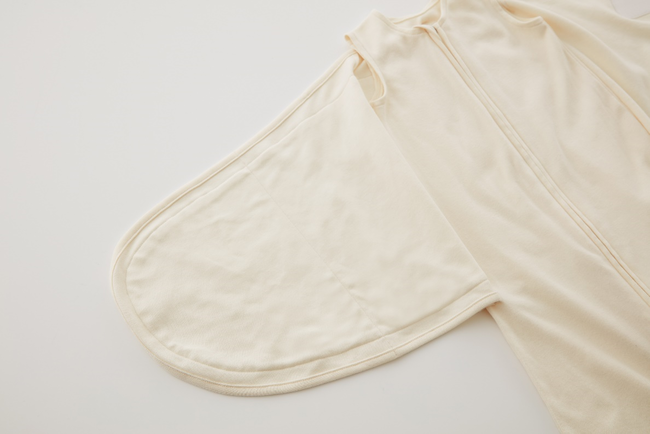 おくるみとスリーパーが一体となったオリジナルアイテム。 マジックテープで止めるだけであっという間におくるみが完成する、 赤ちゃんの睡眠にもよし、 親御さんの時短にも役立つ新生児~6ヶ月頃まで使えるアイテムです。