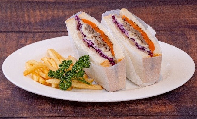 サンドイッチのコンセプトは、「メインディッシュをまるごとパンで挟む」。通常の料理1皿のメイン料理とガルニを一緒に挟んでいただくイメージ。おすすめは、アメリカの代表的家庭料理「ミートローフ」をクリーミーなマッシュポテトとグレイビーソースと一緒に挟んだ、「ミートローフサンドイッチ」や、自家製のコンビーフを温野菜と挟んだ「自家製コンビーフサンド」。その他のラインナップも今までになかったサンドイッチのご提案です。