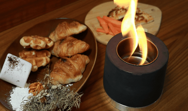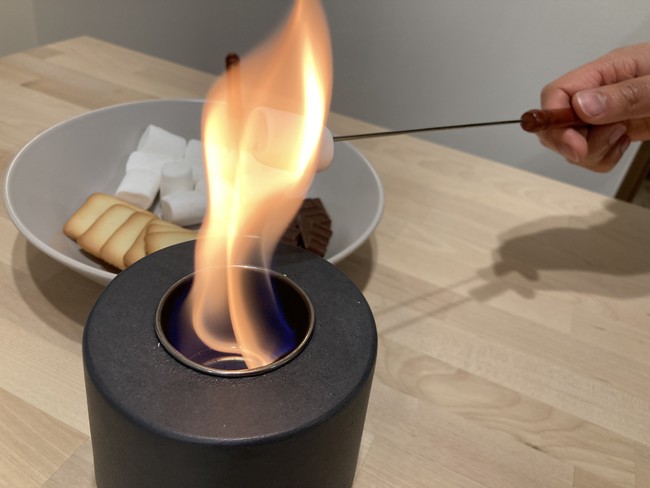 燃料にバイオエタノールを使用しているため、一酸化炭素などの有害物質が非常に出づらい設計となっています。化学式上、バイオエタノールの燃焼後に出るものは二酸化炭素と水だけです。燃焼による有害物質の発生がほぼないため、マシュマロを焼くなど簡単な調理も可能です。