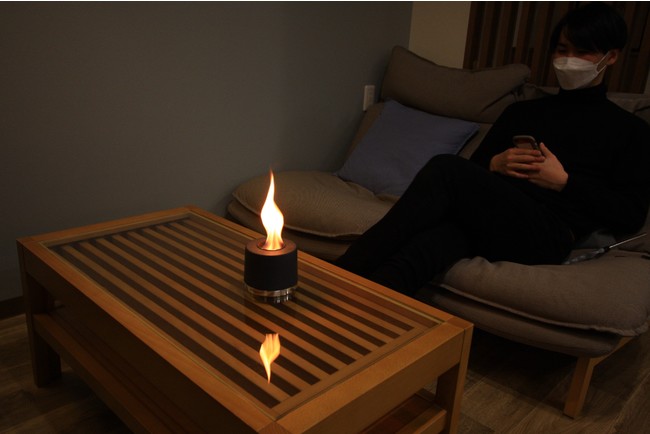 巣ごもり需要の拡大に合わせて、自宅でリラックスしていただきたいという想いからこの製品が生まれました。コロナ禍で外出自粛が求められ、快適な自宅環境が必須となっている今、室内で簡単に焚き火気分を味わえる製品がmfireです。