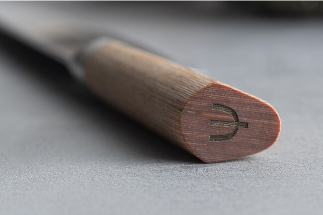 和包丁で使用される栗型形状を進化させました。左右対称なので左右どちらが利き手でも使いやすいデザインです。特許構造と職人による加工技術が合わさり実現した、ヤクセル独自のハンドルです。水に強く、汚れがつきにくい積層強化木を採用。口金には錆びに強いハイグレードなステンレス素材316Lを採用。メンテナンス性にも優れています。エンド部分にロゴ入りです。