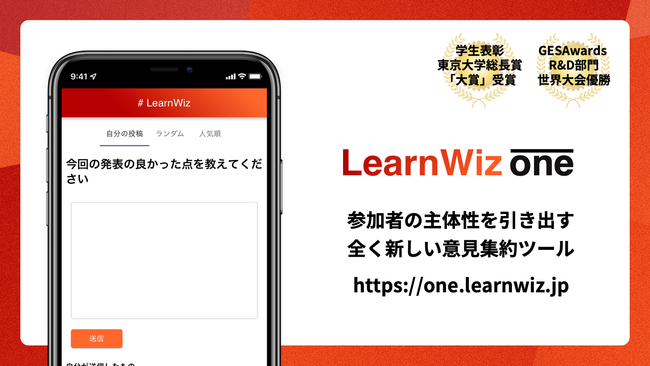 LearnWizは、教育工学の知見をもとに、参加者の主体性を引き出しながら意見集約を促すことのできるオンラインツール「LearnWiz One」の開発・運用を行なっています。