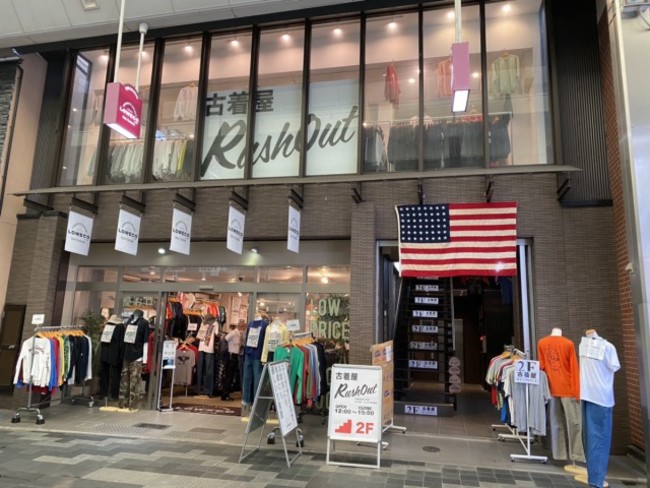 古着屋『RUSHOUT(ラッシュアウト)』(SSY株式会社、本社:岡山県岡山市、代表取締役:笹谷 忠史)の新店舗が、京都随一の繁華街・河原町にOPENしました。