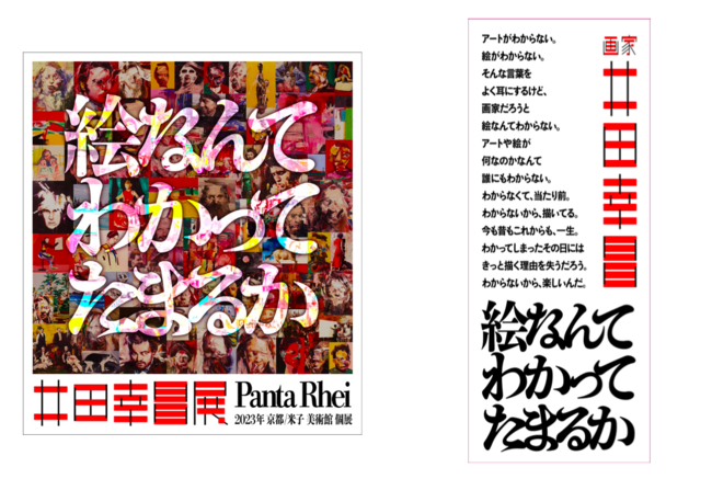 展覧会開催に先駆けて、2022年10月16日(日)より井田幸昌からのメッセージ「絵なんてわかってたまるか」を渋谷にて掲出いたします。「絵なんてわかってたまるか」とは、「わからない」ことを肯定し、「わからない」からこそ楽しい、そして挑戦ができるんだということを伝えていくためのメッセージです。井田自身初となる国内での美術館巡回展を、多くの方に対して届けたいという強い思いがあります。
