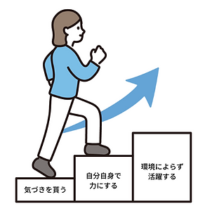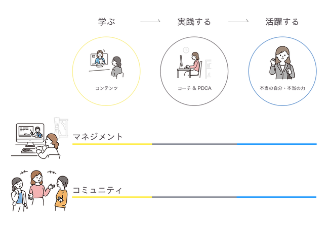学びと合わせて自己理解を深める仕組みを通して、今後の人生も自分らしい働き方を選択できる自分軸を見つけるサポートをします。