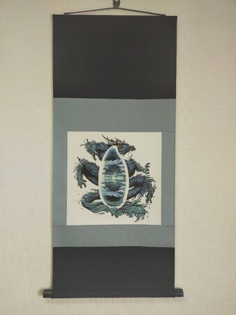 中畑神社神楽保存会奉仕者による舞のとなりで、ライブペインティングを行います。約1時間半で、天岩戸開きをモチーフとしたアートが完成します。