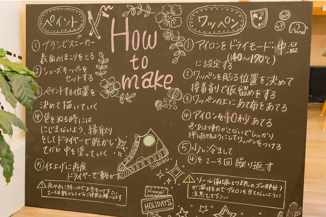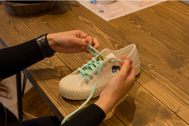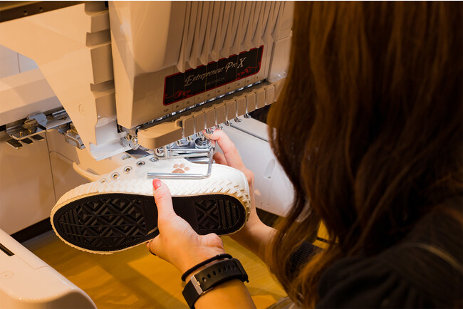 専用のミシンで刺繍を入れたり、靴紐をチャームやパーツでアレンジしたり、ワッペンを貼り付けたり、ペイントしたり・・・世界に一つだけのスニーカーをカスタマイズできます。