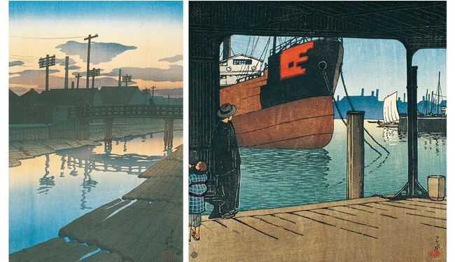左:《木場の夕暮》東京十二題 1920(大正9)年秋 木版・紙