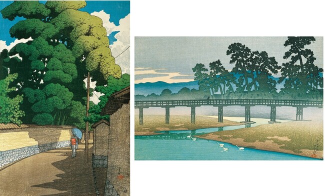 ▶日本の原風景を描いた巴水の作品は海外にも多く輸出され、風景美を叙情的に描き出し、繊細で臨場感ある画風が評価されている。