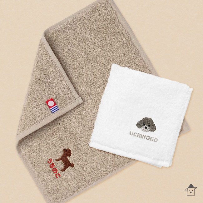 どのアイテムにも、愛犬(うちのこ)と同じ犬種、毛色のイラストが刺繍され、限りなく「うちのこ」に近いものをお選びいただけます。